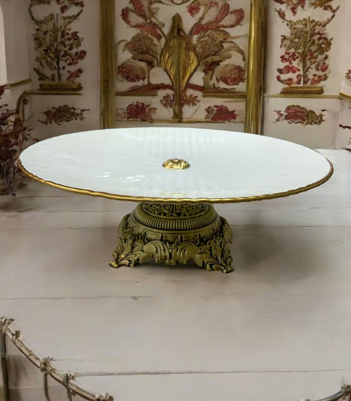اگر به دنبال ظرفی هستید که تجمل، کیفیت و اصالت را همزمان در خود داشته باشد، دیس پایهدار بک استون لب طلا گرد انتخابی بینقص است.