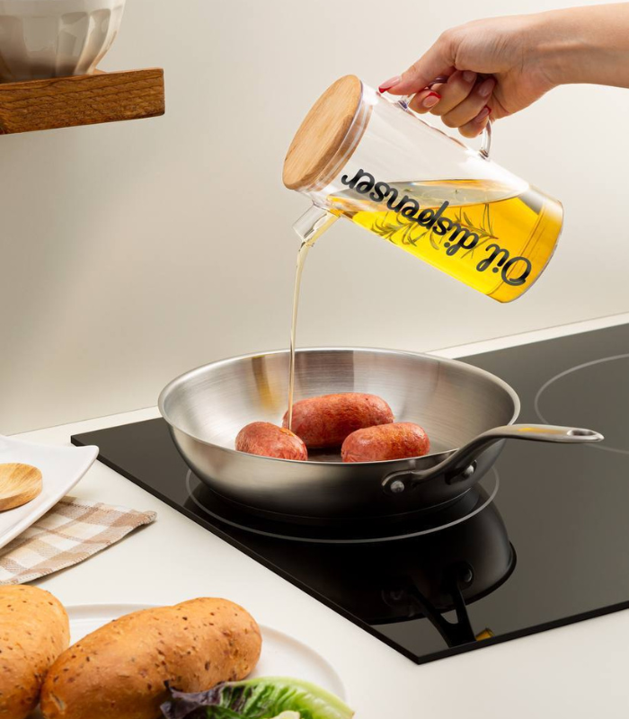 همچنین واشر سیلیکونی تایوانی که در محل اتصال درپوش به بدنه تعبیه شده، مانع نشت مایعات شده و از ورود آلودگی یا گرد و غبار به داخل ظرف جلوگیری می‌کند. دهانه‌ روغن‌ریز به‌گونه‌ای طراحی شده که مایعات را بدون چکه و کاملاً کنترل‌شده از ظرف خارج می‌کند؛ این موضوع هم از هدر رفتن روغن جلوگیری می‌کند و هم نظافت آشپزخانه را حفظ می‌نماید.