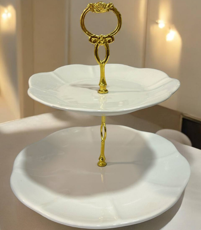 شیرینیخوری ۲ طبقه یکی از محصولات زیبا و پرطرفدار بازرگانی کائولین است که با طراحی کلاسیک و بدنهای از سرامیک درجه یک، جلوهای چشمنواز و کاربردی به میز پذیرایی شما میبخشد. این محصول با ابعاد ۲۵ در ۲۵ سانتیمتر طراحی شده و بهصورت دو طبقه ساخته شده است تا فضای بیشتری برای سرو انواع شیرینی، دسر، میوه و شکلات در اختیار شما قرار دهد.