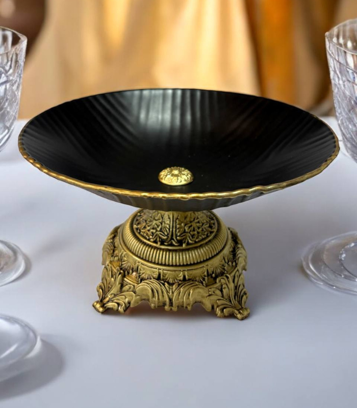 بدنهی کریستالی این کاسه با شفافیت بالا و درخششی چشمگیر طراحی شده تا نور را بهزیبایی منعکس کند. لبهی طلایی آن با دقت پرداخت شده و جلوهای لوکس و جذاب به محصول میبخشد. پایهی رزینی نیز با طرح سنگ طبیعی و پرداخت دقیق، علاوه بر زیبایی، ثبات و استحکام فوقالعادهای به ظرف داده است.